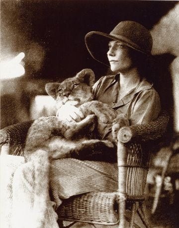 I became briefly rather obsessed with her, as can happen when one writes about a person: she was such a romantic figure, so richly frustrating, a wild girl with the demure look of an off-duty member of the Ballets Russes, whose lion cub Samson was her true soulmate. One of those heiresses whose money (as Noel Coward wrote of Barbara Hutton) was always between her and happiness, she scattered havoc - mainly for herself - and ‘harboured an equally fervent life force and death wish.’